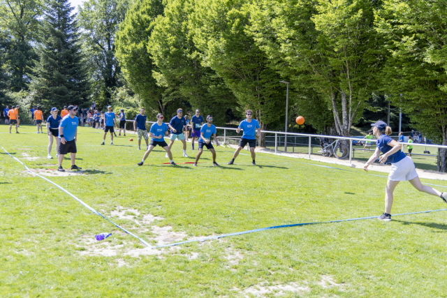 Tournoi mixte. Équipe de 6 à 8 personnes : 5 joueurs de champ et 1 à 2 remplaçant(s). Ballons fournis.
