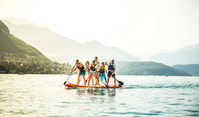 Le stand-up paddle est une discipline qui se pratique debout sur une planche où l’on se déplace sur l’eau avec une pagaie. Sur une version XL, vous êtes 6 sur la paddle, et l’objectif est d’arriver premier de la course !